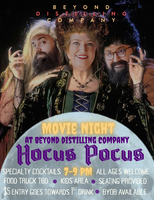 ![]() Join us for a family-friendly evening at Beyond Distilling Company as we screen the classic Hocus Pocus!Join us for our first movie night! We will have chairs and blankets to make your movie screening all the more cozy. The cost of your ticket can be used towards your first drink purchase. We will have two... |