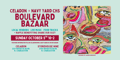 ![]() The Boulevard Bazaar returns Saturday, October 5 from 10โ2!Celadon X Navy Yard CHS: Boulevard BazaarDate: Sunday, October 5thTime: 10:00 AM-2:00 PMLocation: Celadon Warehouse & Navy Yard CHSSpend your Sunday strolling through a market full of local vendors, grabbing bites from Charlestonโs favorite food trucks, and soaking up live music by @runriverrunband โplus in honor of...