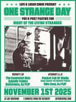 ![]() Two epic shows to bookend Little Stranger's "Night of the Living Stranger"PREPARTY 11P-1AThe Sandwich BoizAppollo ValdezDollamenu W/ DJ FlipAFTERPARTY 3-6PPocket Full Of Shells Slim Soul W/ DJ Flip