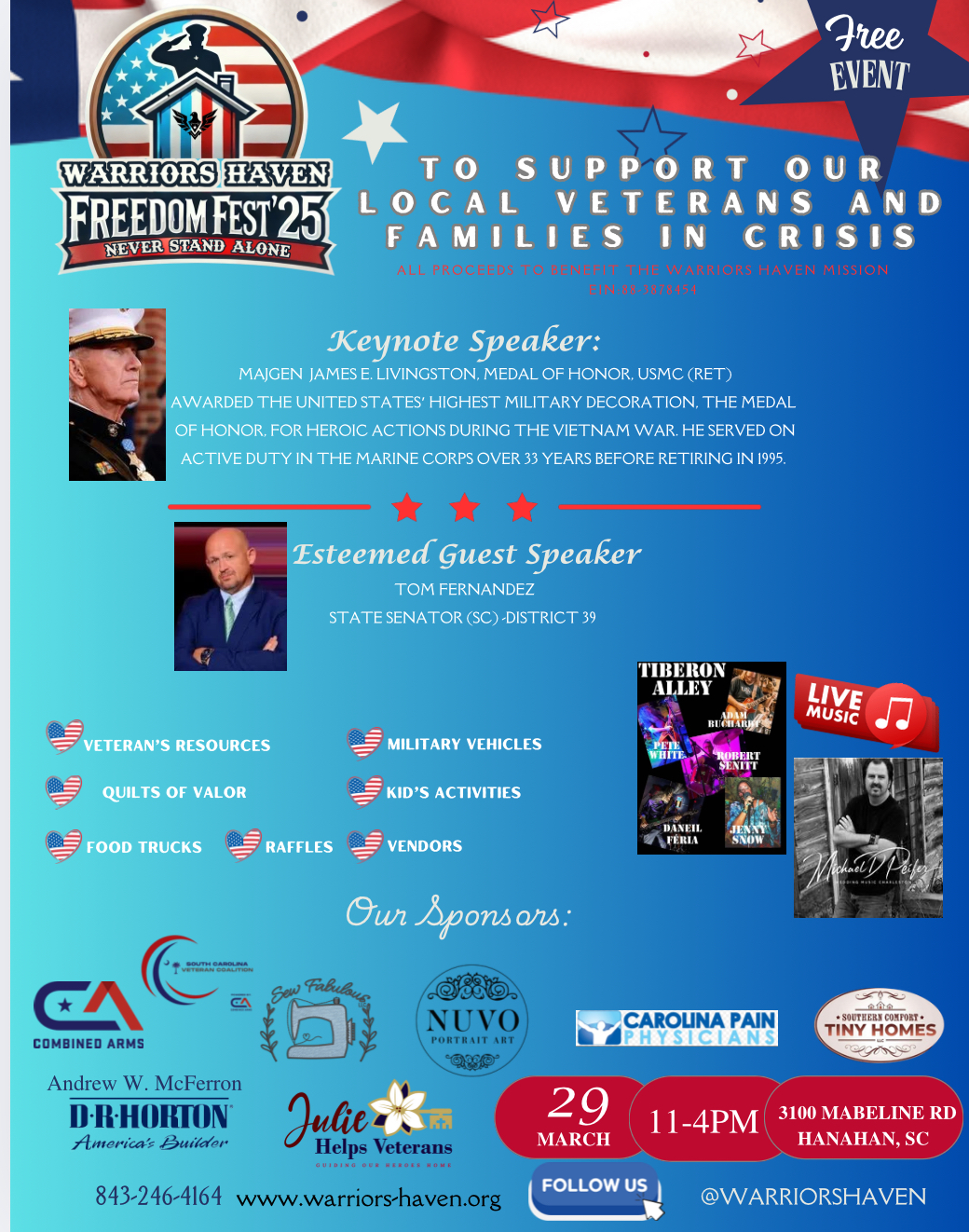 family friendly FREE EVENT. Live Music, vendors, food trucks raffles,speacial speakers, Beacon Award presentation, Quilts of Valor presentations, military vehicles, Veteran Reapurces, kids activities