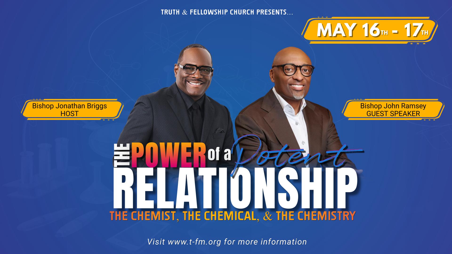 This event is about discovering the chemistry that builds God-centered relationships—whether single, engaged, or married.CALLING ALL SINGLES: The Power of a Potent RelationshipCome join us at Truth & Fellowship Church for an event that will change your perspective on relationships! Discover the secrets to building strong, lasting connections with like-minded individuals. Whether you're looking for...