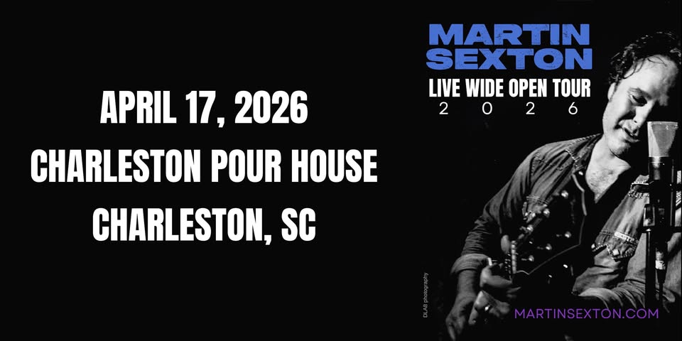Martin Sexton Live Wide Open Tour 2026 Friday, April 17th 2026Charleston Pour House Main Stage 7:30 doors / 8:30pm show $35 advance/ $40 day of show Martin Sexton tours in support the 25th anniversary of Live Wide Open - the critically-acclaimed double vinyl live album. The show will include these fan-favorites as well as some... |