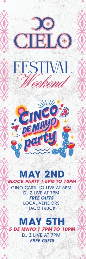 Block party with special drinks, free gifts, local vendors, and music from live DJ!