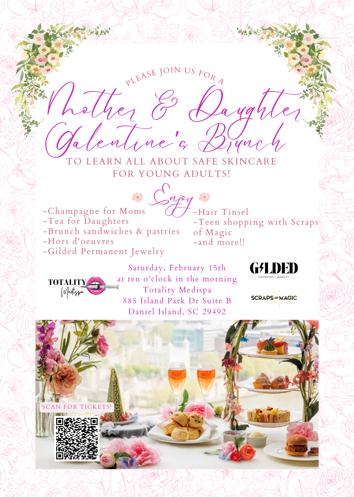 Join us for a Special Mother & Daughter Galentine’s Brunch!Looking for the perfect way to celebrate Galentine’s Day with your daughter? Treat yourselves to an unforgettable Mother & Daughter Galentine’s Brunch, where beauty, bonding, and fun come together!✨ Is your daughter into skincare? Skincare experts will be on hand to guide her in choosing safe and effective products tailored to young skin!🥂 Champagne for moms, tea for daughters🍽️ Delicious brunch served💖 Hair tinsel & permanent jewelry🛍️ Teen/tween shopping & so much more!Tickets are VERY limited—secure yours now before they sell out!